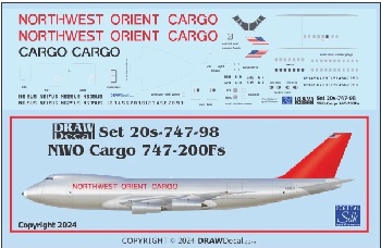 2024.05.25(土) 15:26 【新製品】Drawデカール 20-747-98 1/200 Northwest Orient Cargo 747-200Fs 2,400円 ●Drawデカール 20-747-98 1/200 Northwest Orient Cargo 747-200Fs 2,400円(税込み)
